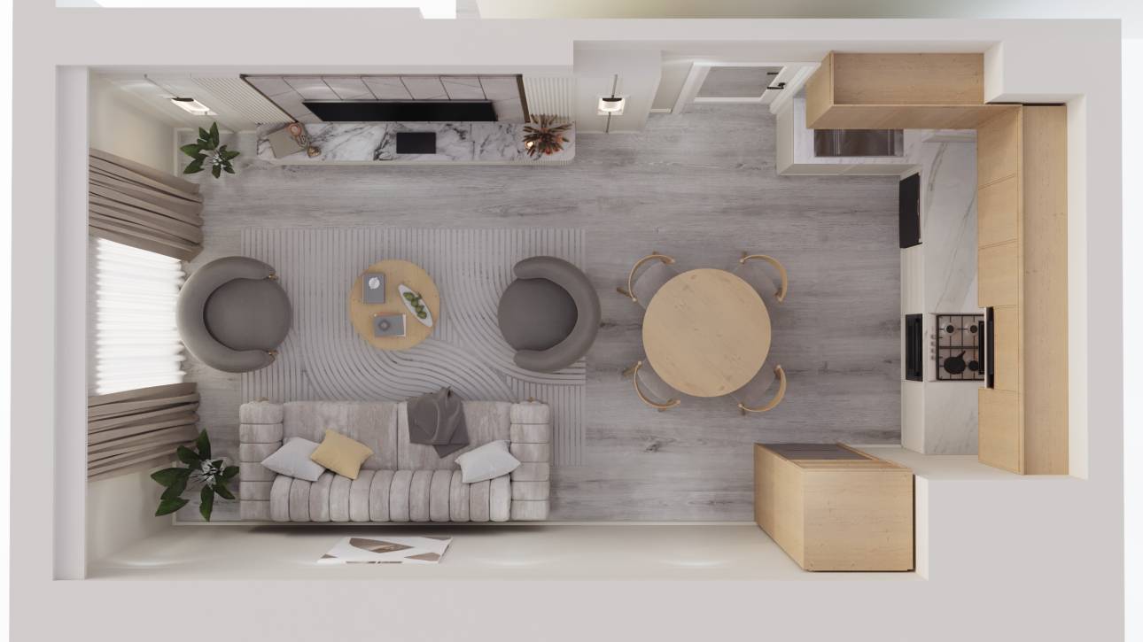 1+1, 2+1 ve 3+1 balkonlu daire seçenekleriyle;