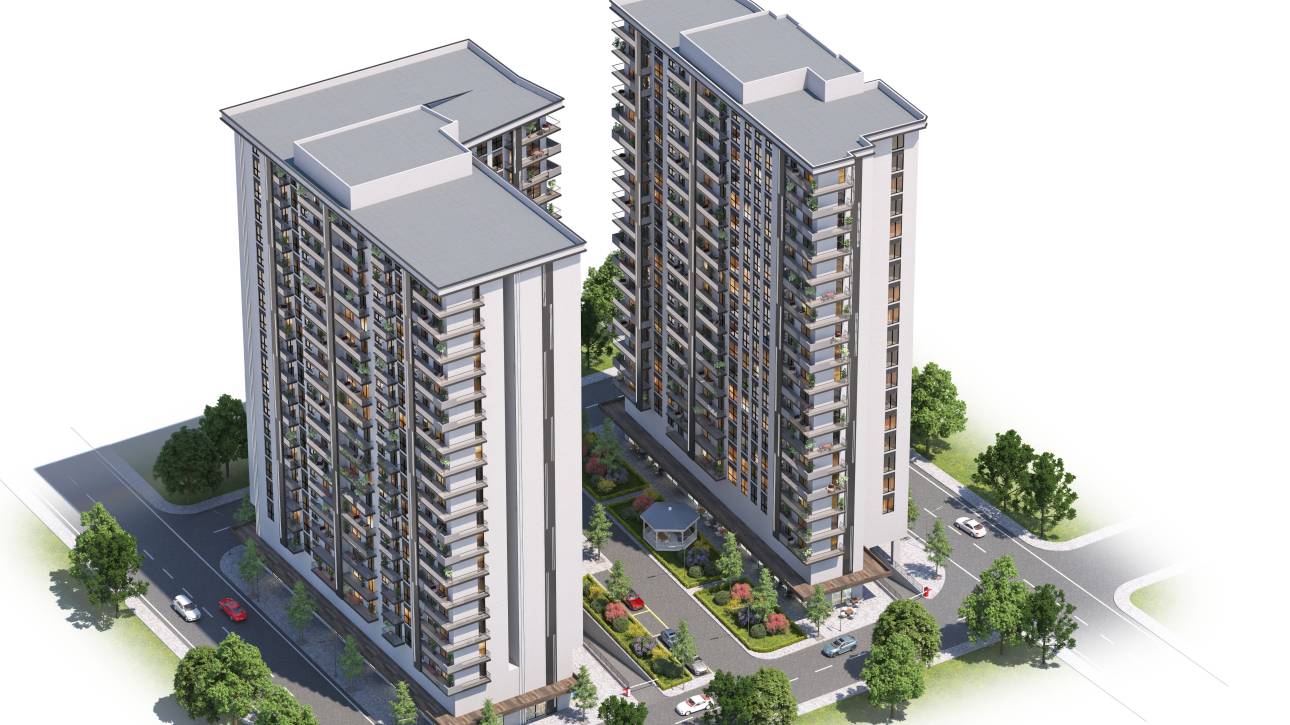 20 katlı 2 blok, toplam 270 daire ve tamamı ticari kullanımlı zemin katlarıyla