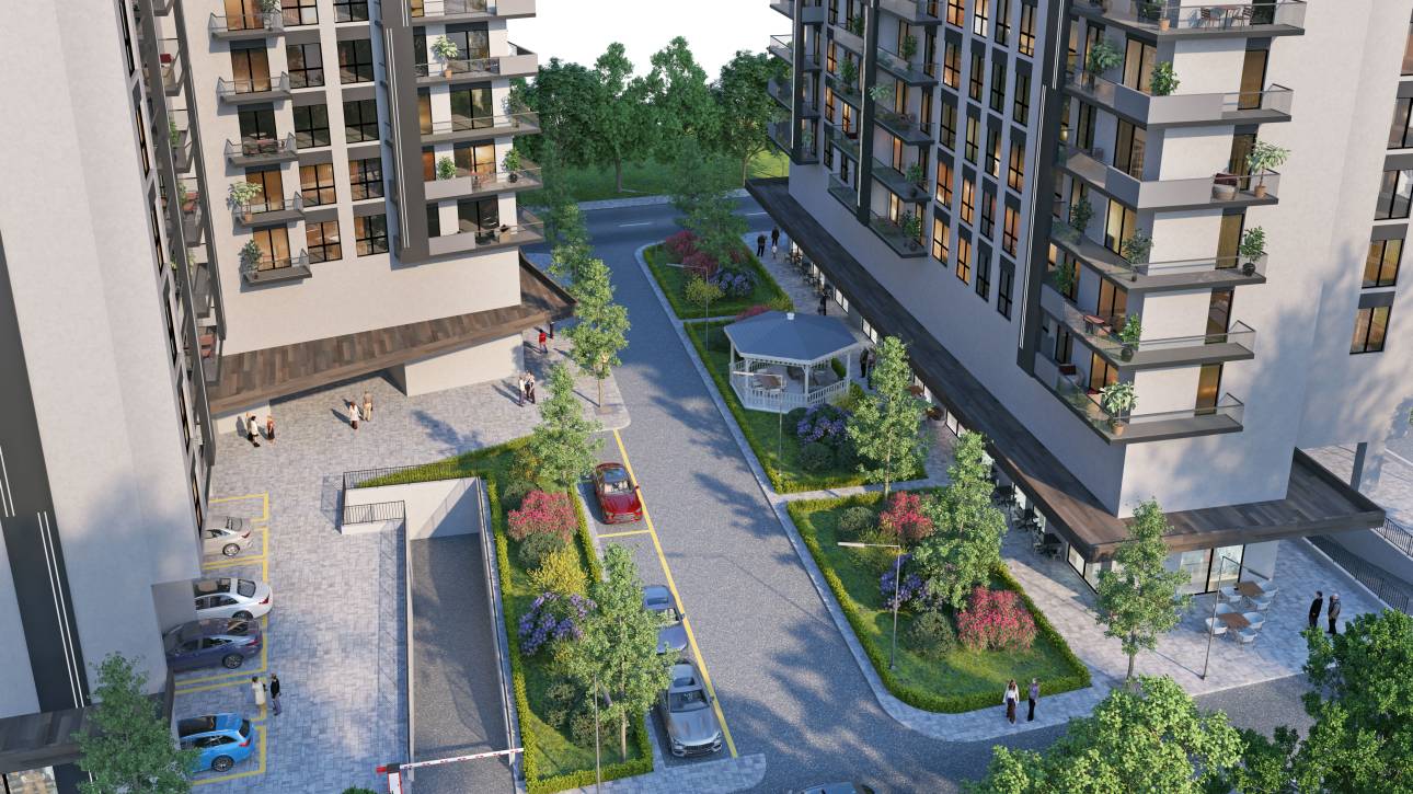 açık ve kapalı mutfak alternatifleri, geniş peyzaj alanları ve prestijli alışveriş caddesiyle